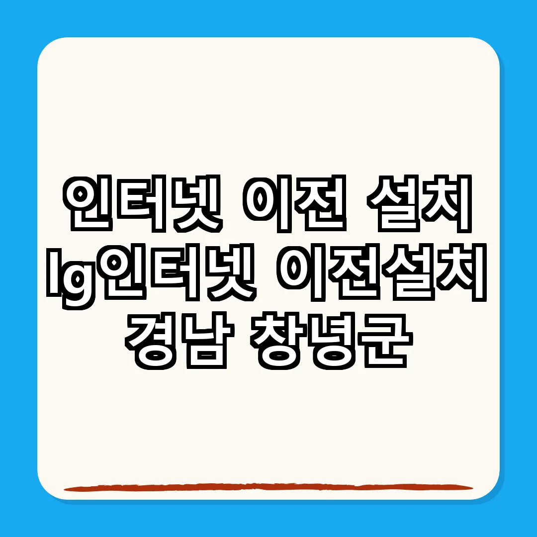경남 창녕군에서 인터넷 이전 설치는 필수적입니다. 사전 준비와 정보를 확인하여 원활한 인터넷 사용을 보장하세요. 각 통신사의 정책을 잘 이해하고 최적의 선택을 하시기 바랍니다.