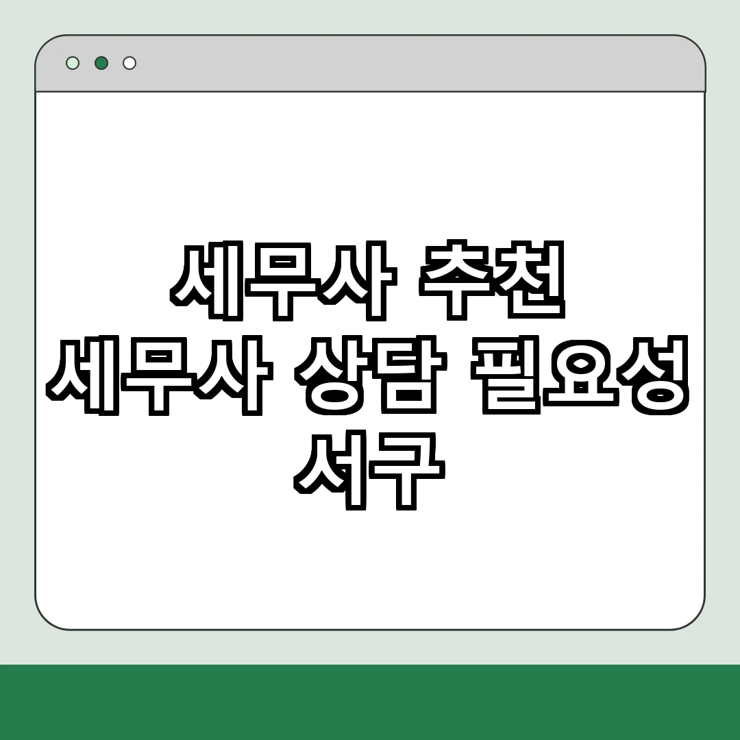 서구 지역에서 세무사를 추천받는 것은 세무 문제를 효과적으로 해결하는 데 큰 도움이 됩니다. 세무사 선택 시 추천 순위, 후기, 상담 필요성, 서비스 종류, 가격 등을 종합적으로 고려하여 신중하게 결정하는 것이 중요합니다.