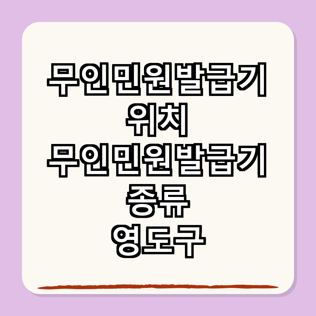 영도구에서는 무인민원발급기로 다양한 서류를 쉽게 발급받을 수 있습니다. 위치와 운영 시간을 미리 확인해 두면 더욱 편리하게 이용할 수 있습니다. 또한, 신분증을 잊지 않고 챙기는 것이 중요합니다.