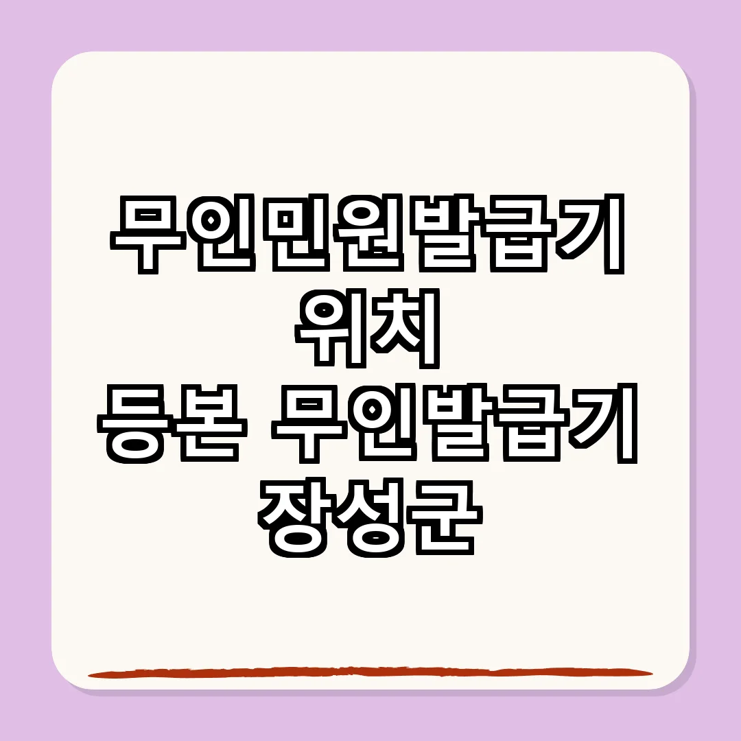 장성군에 사는 여러분, 무인민원발급기를 통해 쉽고 빠르게 필요한 공공서류를 발급받을 수 있다는 사실, 알고 계셨나요? 장성군 내 여러 곳에 설치된 무인민원발급기는 여러분의 시간과 노력을 절약해주는 든든한 도우미입니다. 이 글에서는 장성군의 무인민원발급기 위치와 사용 방법, 그리고 어떤 서류를 발급받을 수 있는지에 대해 자세히 알아보겠습니다. 무인민원발급기를 이용하면 복잡한 절차 없이 간편하게 민원 서류를 처리할 수 있습니다.