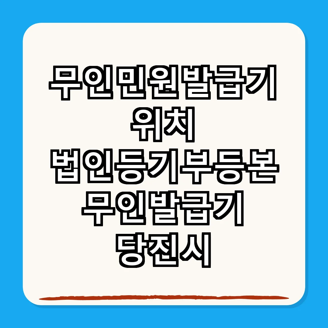 당진시는 주민들이 쉽게 민원을 처리할 수 있도록 무인민원발급기를 공공기관, 대형마트, 도서관 등 다양한 장소에 설치하고 있습니다. 이러한 발급기는 주민등록등본, 가족관계증명서와 같은 서류를 손쉽게 발급받을 수 있는 편리한 장치입니다. 따라서, 각 무인민원발급기의 위치와 운영 시간을 사전에 확인하는 것이 매우 중요합니다.