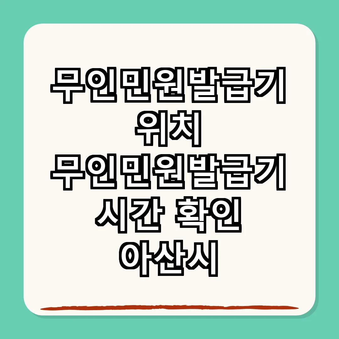 아산시의 무인민원발급기는 다양한 장소에 위치해 있어 시민들이 쉽게 접근할 수 있습니다. 각 발급기의 운영 시간과 제공하는 서류를 미리 확인하고 방문하면 더욱 편리하게 이용할 수 있습니다.